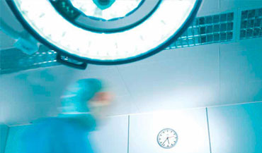 Avanzada iluminación mediante Lentes Fresnel: permite crear una “columna de luz" uniforme - No es necesario reajustar la luminosidad y tampoco se proyectan sombras. Luz ambiental para procedimientos de laparoscopia integrada en la cúpula.
