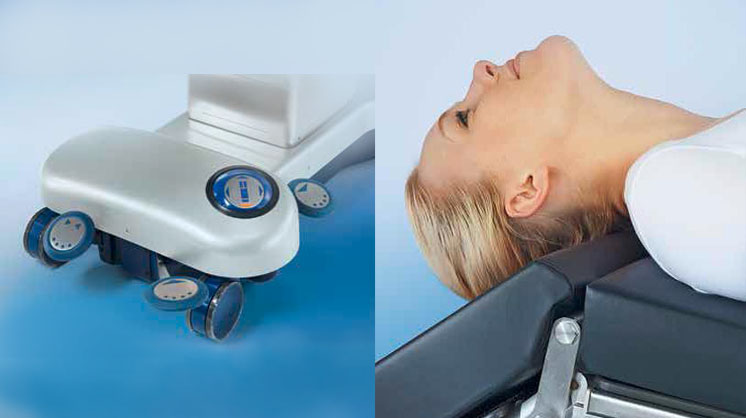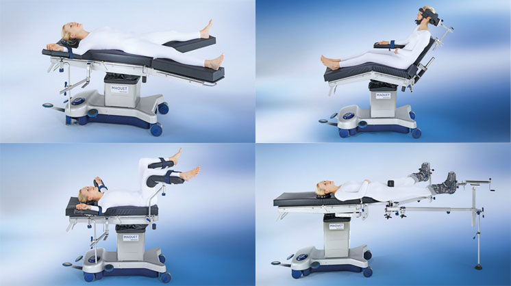 Dividida en 5 secciones, descanso para la cabeza (opcional), placa de espalda, asiento y placas para piernas (opcional). Relleno especial de espuma, con un grosor de 80 mm; con guías para inserción de cassette de rayos X (desde la parte de la cabeza); posicionamiento inverso del paciente con la placa para espalda para operaciones de hombro (opcional) montada en el punto de montaje de los pies.