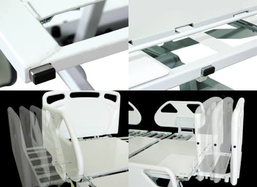 Fácilmente extensible a través de un botón pulsador. Capacidad de carga de 500 kg (1100 lbs) para uso bariátrico. Es una cama con prevención de caídas gracias a su altura baja que tiene un mínimo de 21 cm (8.31 pulgadas), con un espacio debajo de la misma de 15 cm.